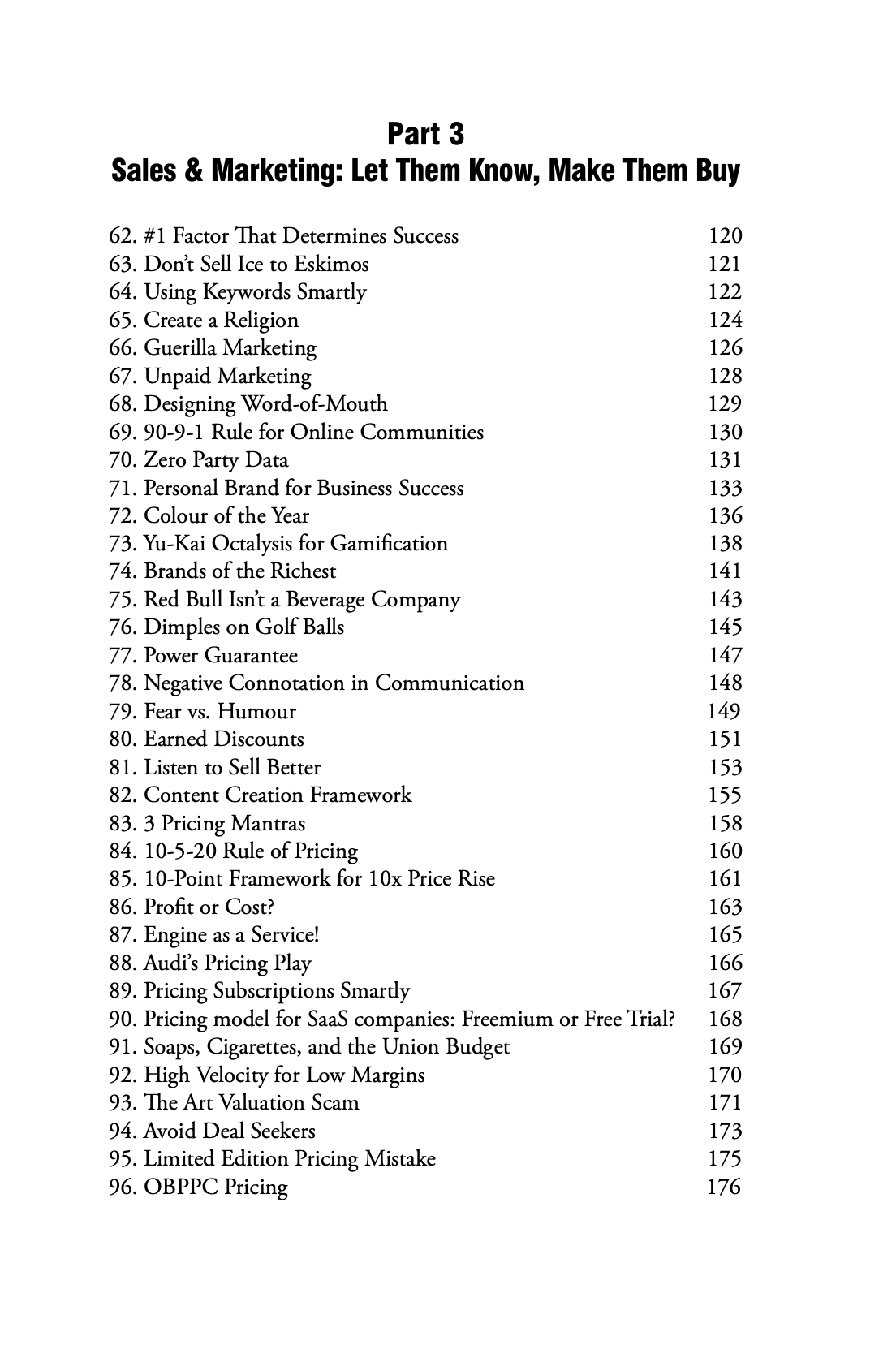 This book is a collection of actionable insights across leadership, business finance, marketing, pricing, and startups.